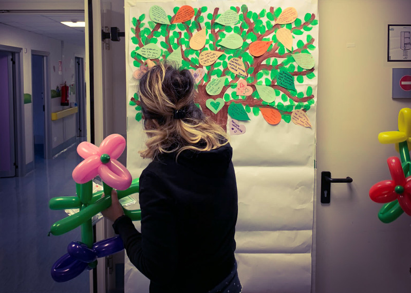 Angelo Mostacchi ha realizzato anche un fiore con i palloncini, da donare ad ogni bambino. Anche Astou, una ragazza che è stata degente lo scorso mese, saputo dell’iniziativa, ha voluto inviarci il suo pensiero via e-mail “Aiutandosi tutto è più facile” ha scritto.