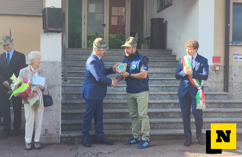 Rimarcando di far parte tutti di una grande famiglia, Invernizzi ha chiamato al suo fianco Carla Villa, madrina delle penne nere di Brivio, omaggiata con dei fiori e una targa. Omaggio, quest’ultmo, consegnato anche all’amministrazione comunale e al capogruppo Perego.