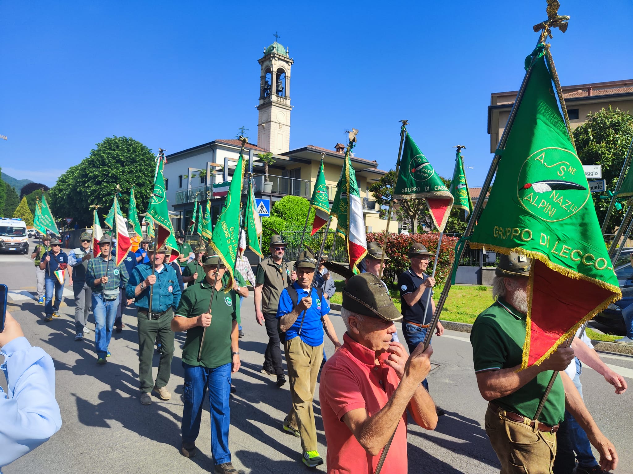 Il lungo corteo di cappelli con le penne nere si è poi incamminato verso il lungolago per una parata allietata dalla fanfara alpina Angelo Masciardi di Asso che ha concesso un tris di canzoni alpine di fronte al castello, agghindato per l’occasione con una maxi bandiera tricolore. Dopodiché la sfilata è continuata fino alla chiesa parrocchiale per la celebrazione della messa, animata dal coro Grigna di Lecco. Al termine rancio alpino al ristorante La Sosta.