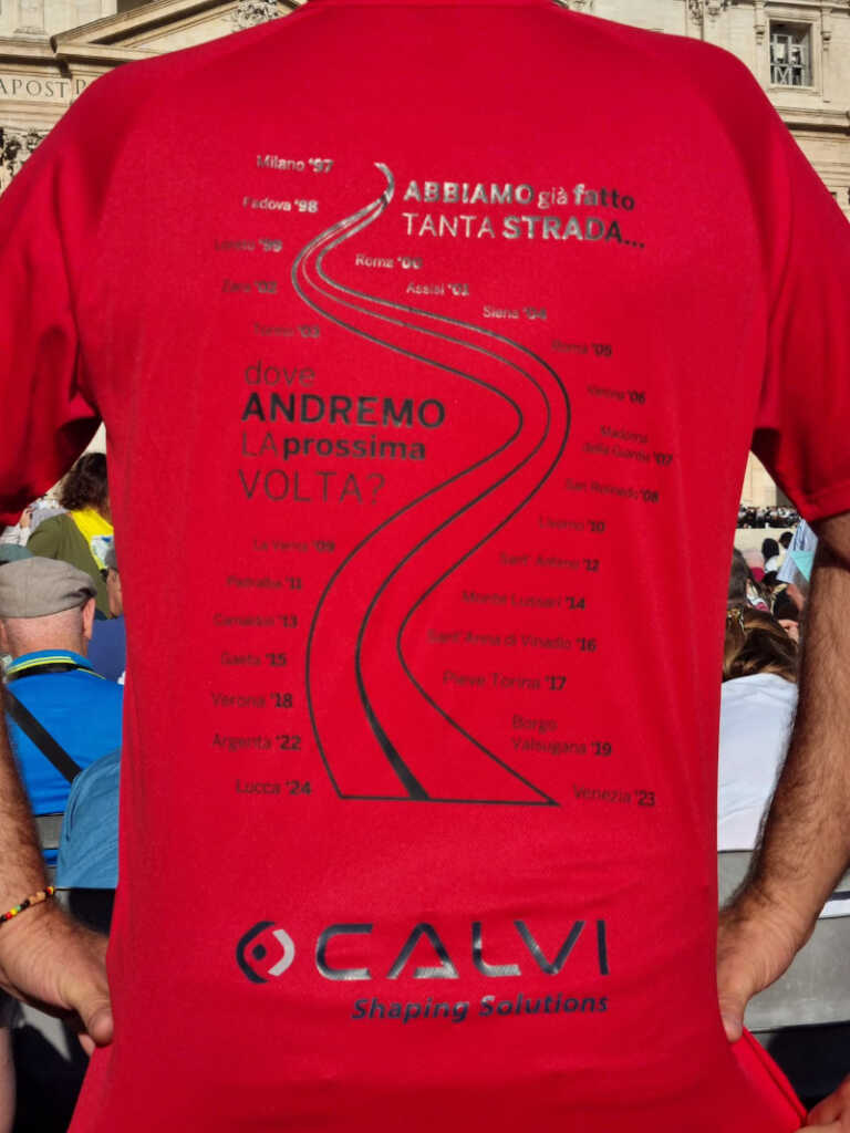 Da segnalare anche la bellissima maglietta, realizzata ad hoc per l’occasione, con le tappe percorse, dal 1997 in avanti, per l’accensione della fiaccola dell’oratorio.