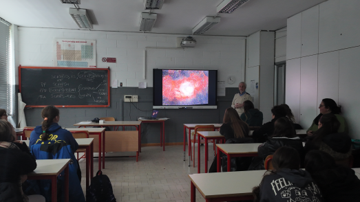 Nella tarda mattinata una delle aule ha ospitato anche Renato Peruffo, un ex professore dell’istituto invitato dalla professoressa Mariele Viganò, che ha mostrato delle immagini di galassie lontane, di misteri cosmici e delle più recenti scoperte astronomiche. Le sue foto hanno rappresentato per i ragazzi un’occasione per guardare l’universo con occhi nuovi e lasciarsi ispirare dall’infinito. Più tardi, il Prof. Frigerio ha tenuto un’attività intitolata “Riscopriamo i Beatles” e ha guidato gli studenti alla scoperta della musica, dello stile e dell’impatto culturale dei Fab Four. Attraverso ascolti guidati, analisi, curiosità storiche e attività creative, gli alunni hanno compreso perché la band continua ancora oggi a ispirare artisti e pubblico.
