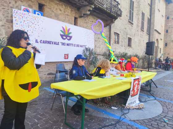 MERATE – Coriandoli, stelle filanti, trombette e tante maschere colorate e spiritose, frutto della creatività, della fantasia e dell’originalità dei partecipanti. Sono state tante le persone che oggi, sabato, hanno preso parte al Carnevale dei motti e dei matti messo in scena dalla Pro Loco in centro città.