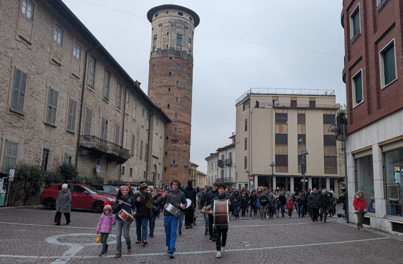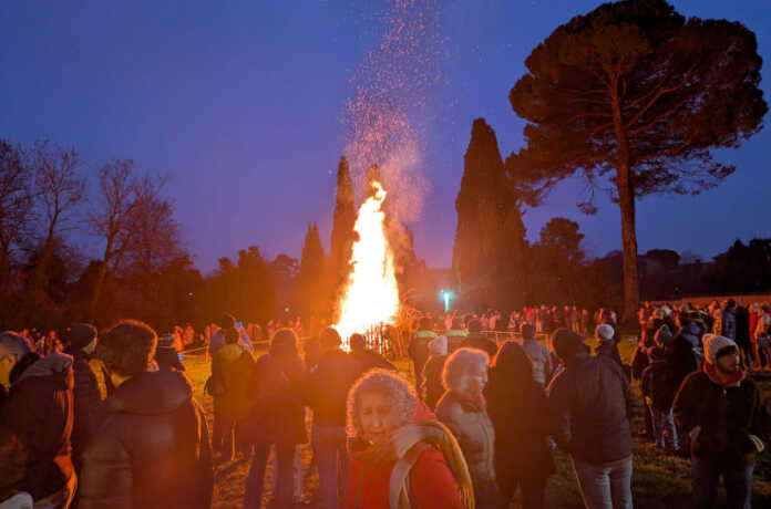 Prima il corteo rumoroso per le vie della città, poi l’arrivo al Parco Belgioioso per il falò della Giubiana