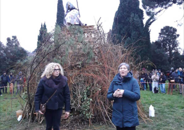 Dopo una breve spiegazione storica sulla tradizione della Giubiana, la presidente della Pro Loco Simona Vitali insieme alla vice sindaco Valeria Marinari, hanno acceso il falò bruciando il fantoccio.