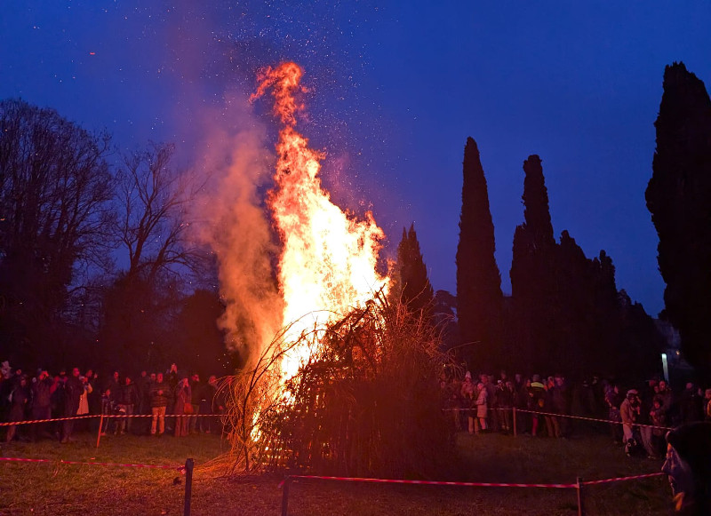 In testa al corteo la Giubiana, seduta su una sedia e portata al rogo per scacciare metaforicamente l’inverno e il freddo.