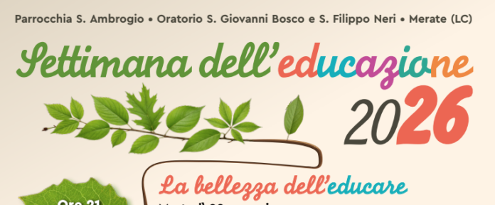 MERATE – Due serate speciali in occasione della settimana dell’educazione 2026. A proporle sono la parrocchia di Sant’Ambrogio e l’oratorio San Giovanni Bosco e San Filippo Neri, in collaborazione con il Comune e Osgb, invitando in città relatori con grande esperienza nel campo educativo, psicologico e sportivo.