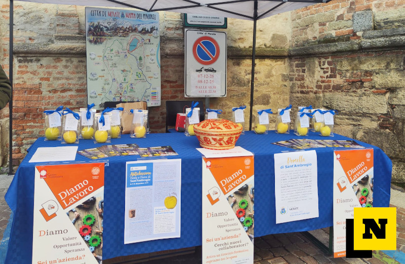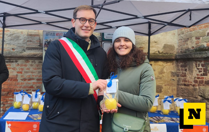 “Abbiamo voluto riscoprire antiche tradizioni come quella della pomella ai fidanzati: in questi mesi abbiamo voluto guardare al passato per proiettarci con ancora più forza e vigore nel futuro” ha aggiunto ringraziando la banda sociale meratese che ha accompagnato con le note della Piva e di altre canzoni natalizie il momento di apertura della fiera.