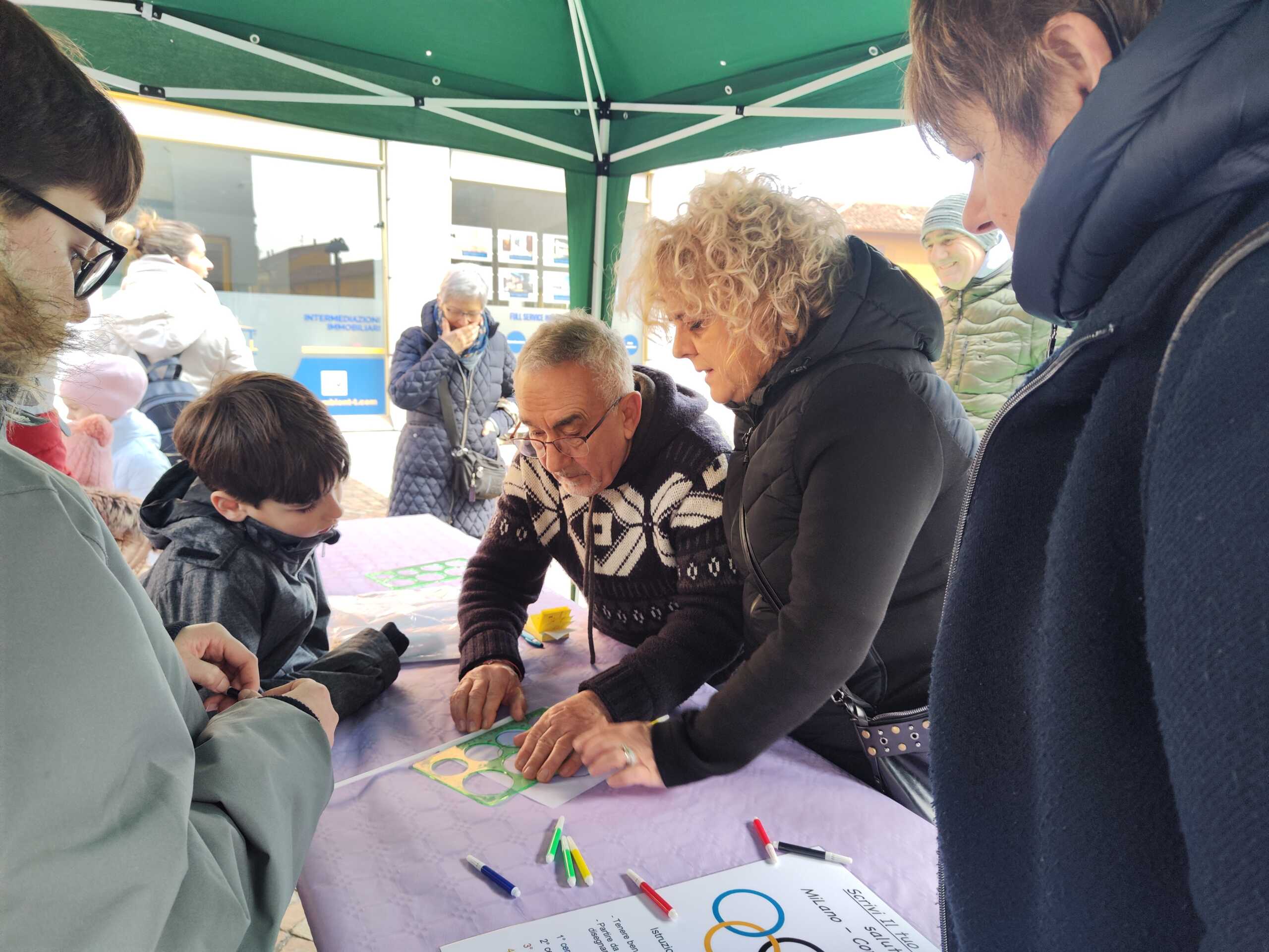 Ad accogliere le due mascotte niente meno che il sindaco Mattia Salvioni in persona, accompagnato da diversi assessori e consiglieri comunali. Anche la Pro Loco ha contribuito all’evento con il laboratorio Coloriamo le Olimpiadi grazie al quale sono state fatte realizzare ai bambini delle bandierine con i cinque cerchi.