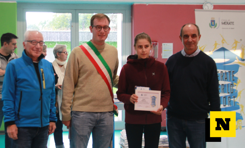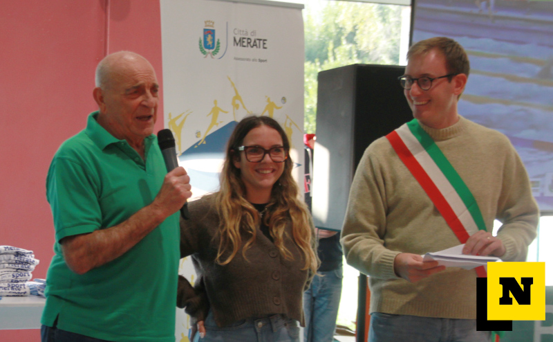 L’amministrazione comunale ha voluto chiudere la cerimonia consegnando una maglietta di Merate per lo sport in regalo.