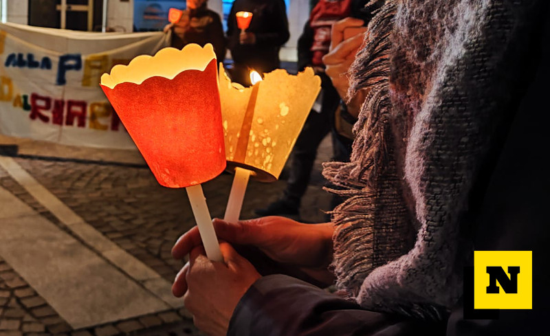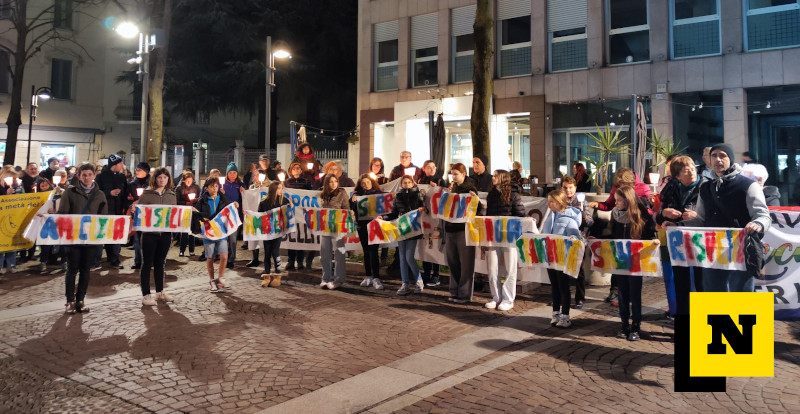 Le parole hanno poi lasciato il posto alla luce delle fiaccole accese una dopo l’altra con il corteo, aperto dallo striscione “Sì alla pace, no al riarmo”, che si è incamminato lungo via Garibaldi e via Manzoni per arrivare sotto la Torre, dove si è svolto il primo momento di riflessione. Dopodichè il corteo ha ripreso a marciare verso via Trento per tornare in piazza Prinetti da piazza degli Eroi.