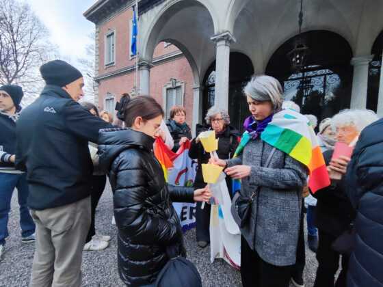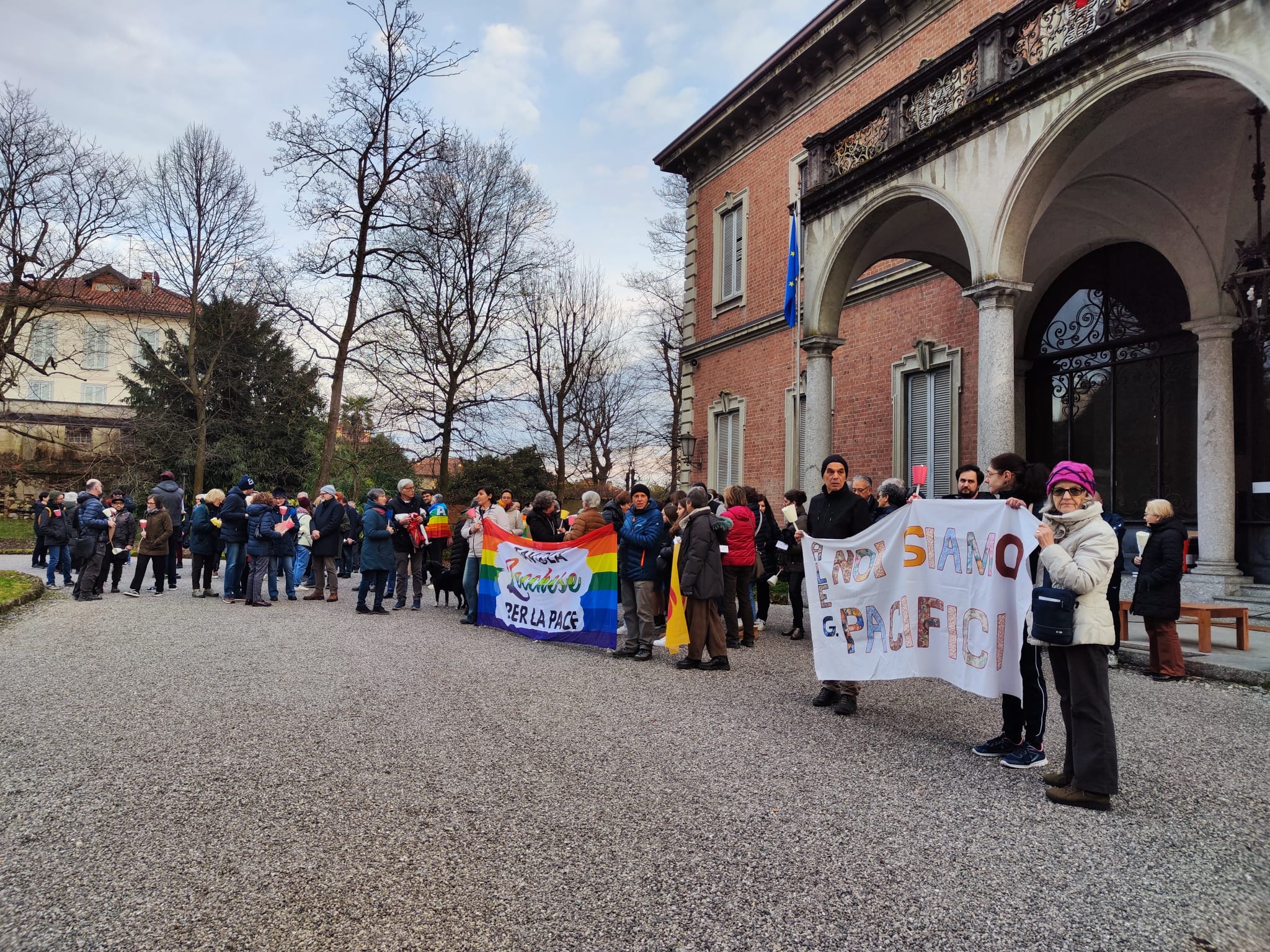 MERATE – Prima, a Villa Confalonieri, l’intervento del giornalista Duccio Facchini; poi il corteo, illuminato dalle fiaccole, fino a Piazza Prinetti dove si sono tenuti due diversi momenti di riflessione e condivisione. Sono state più di trecento le persone che nel tardo pomeriggio di oggi, sabato, hanno preso parte alla fiaccolata per dire “sì alla pace, no al riarmo”.