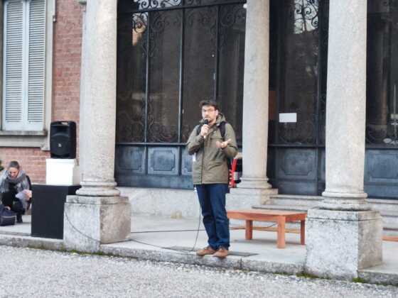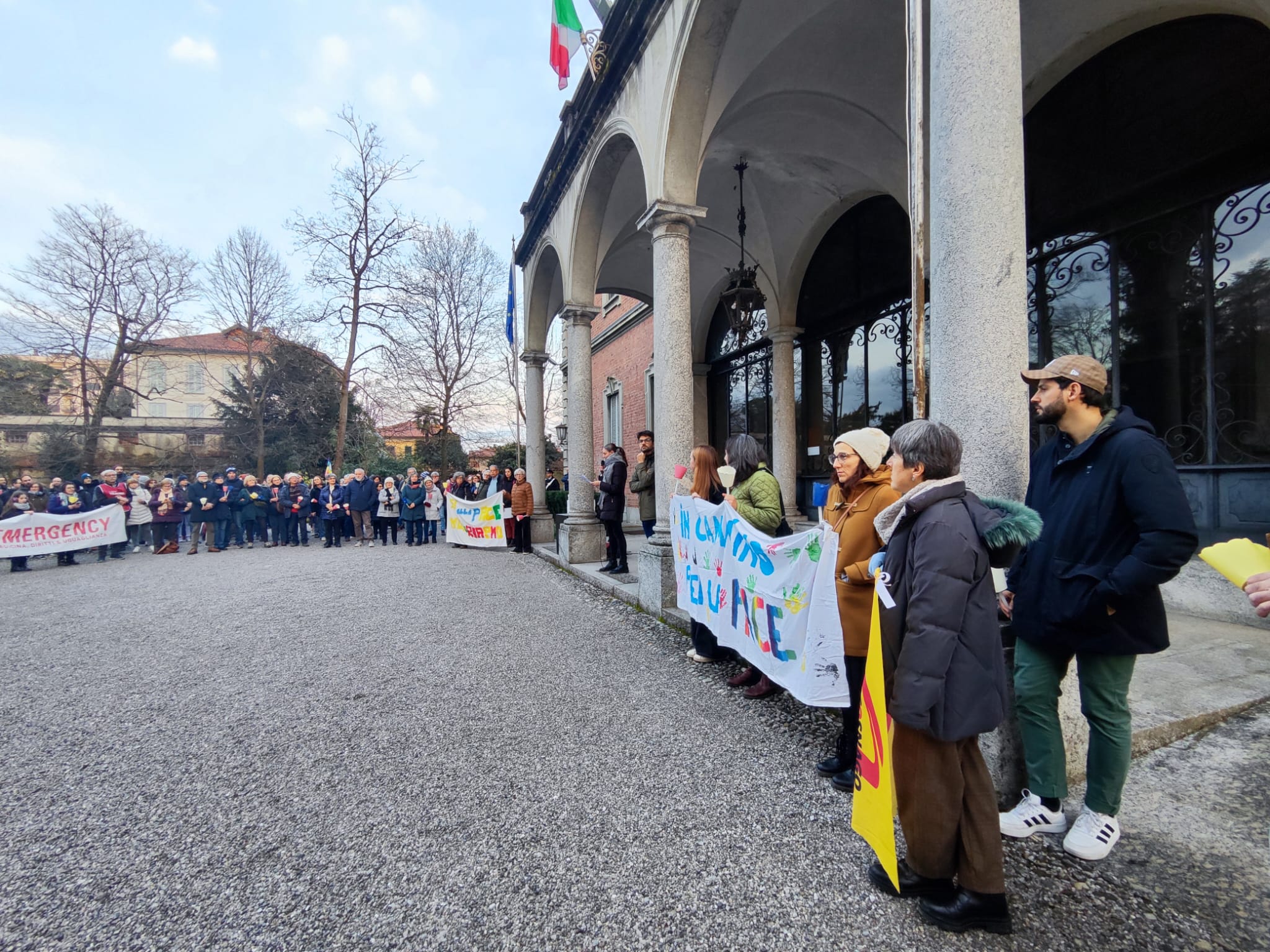 I partecipanti si sono ritrovati a Villa Confalonieri e da qui, dopo le parole di Duccio Facchini, il corteo è salito verso piazza Prinetti