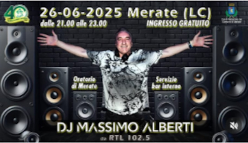 Si comincia giovedì 26 giugno con la musica di dj Massimo Alberti in oratorio. Il noto speaker radiofonico farà divertire, ballare e cantare a partire dalle 21 e fino alle 23. Previsto il servizio bar interno.