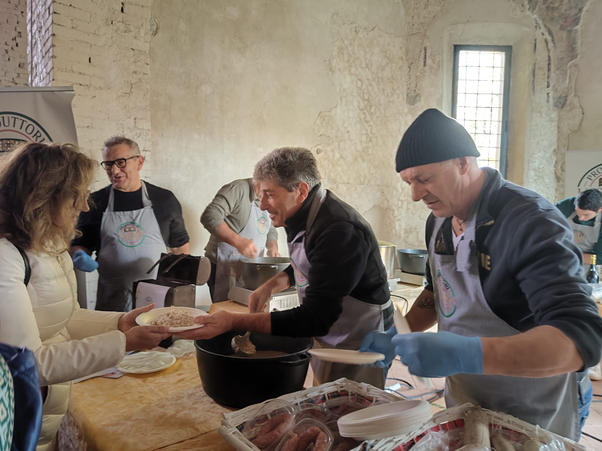 MISSAGLIA – Sono serviti ben 75 chili di luganega – fornita dai macellai del Consorzio della Luganega di Monza – per realizzare 125 metri di focaccia a sostegno della ricostruzione del Monastero della Bernaga, distrutto dal devastante incendio dell’11 ottobre scorso.