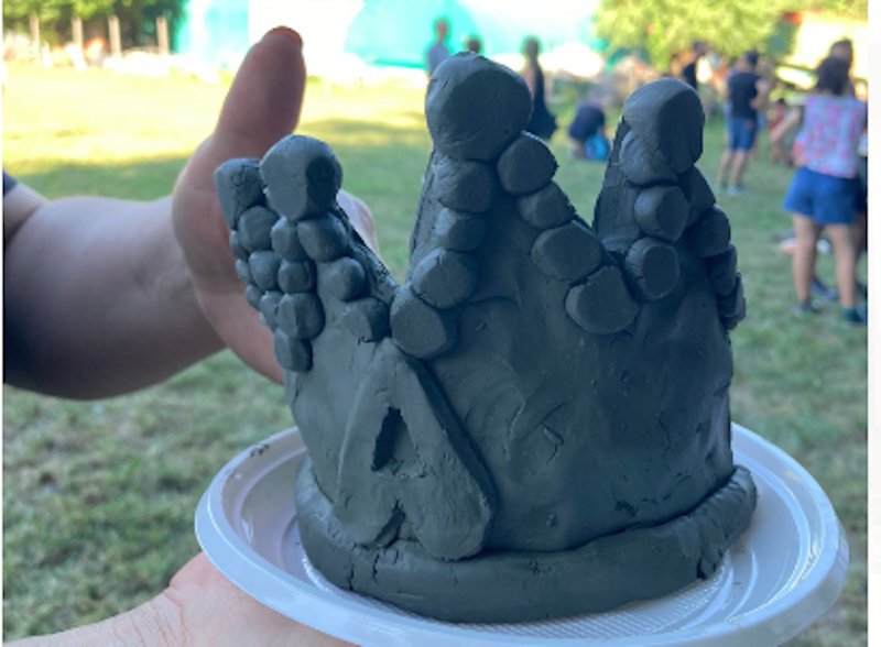 E mentre la storia scorreva nella chiesina che si affaccia sulla piazzetta di Beolco, mettendo in luce i secoli passati, nel pratone sotto la collina, gentilmente messo a disposizione da un privato, i più piccoli si sono potuti cimentare nella realizzazione di un’opera d’arte con la creta, costruendo uno scudo o una corona sotto lo sguardo attento del sindaco Bernocco, pronto a intervenire con un tocco d’acqua o di mattarello per aggiustare il tiro della creazione. A impreziosire il tutto il secondo laboratorio, curato dalla Pro Loco, per colorare la gallina d’oro e i suoi pulcini della regina Teodolinda.