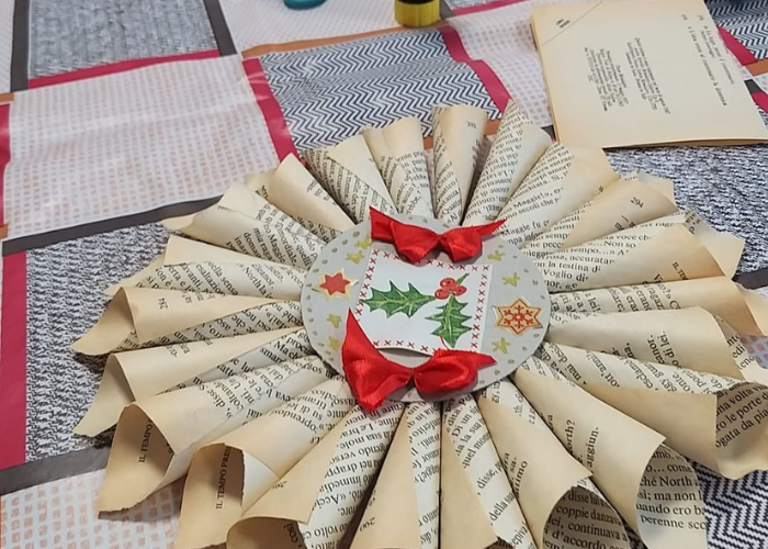 Le operatrici della società di Valmadrera, specializzata nell’economia circolare e nella valorizzazione dei rifiuti, hanno guidato il gruppo di anziani, supportato dai volontari del centro diurno, nella creazione di decorazioni natalizie utilizzando esclusivamente materiali di recupero. Con grande creatività, le pagine di vecchi libri sono state trasformate in eleganti e festose ghirlande, dando nuova vita a ciò che altrimenti sarebbe stato scartato.