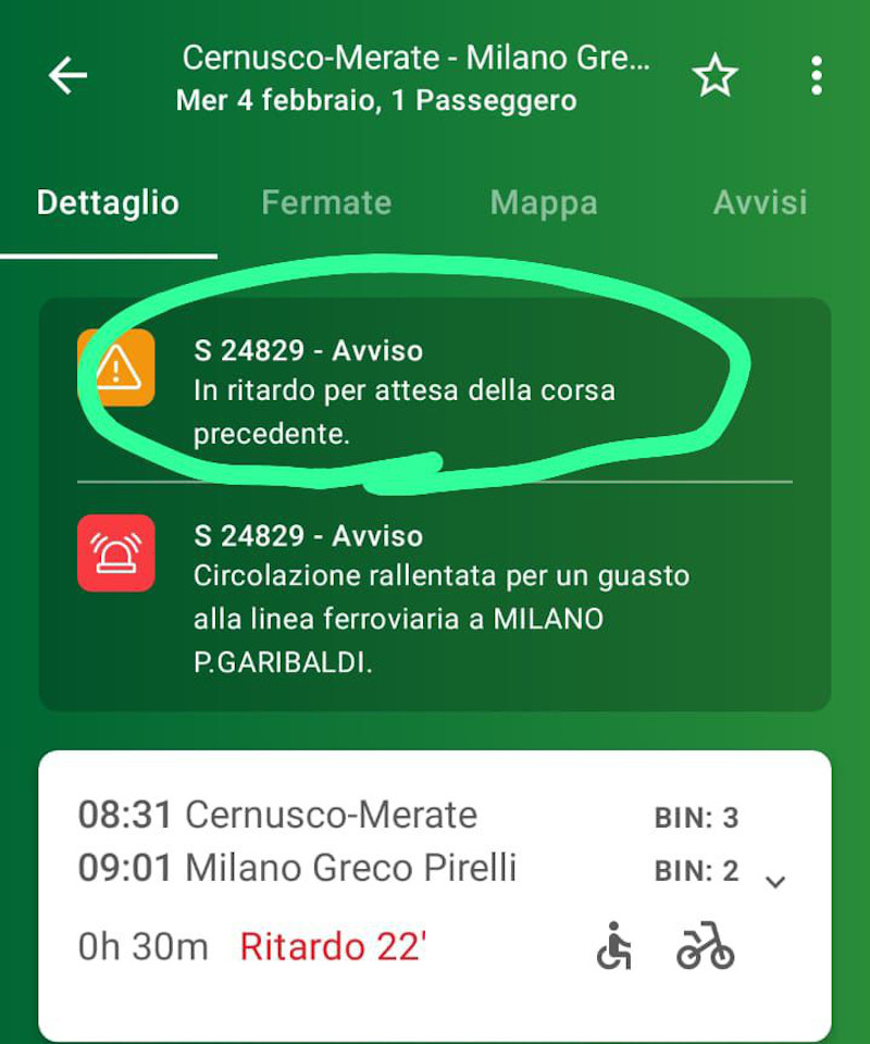 Ma tutto questo l’applicazione di Trenord non lo sa e, sorniona, indica che il treno S8 che parte a Cernusco alle 8.30 è “in ritardo per attesa della corsa precedente” (corsa precedente che non è mai nemmeno partita, essendo stata cancellata)