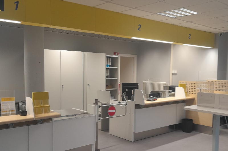 Tra gli interventi effettuati ristrutturazione dell’ufficio con nuova pavimentazione, nuova illuminazione a led a basso impatto energetico, realizzazione di una nuova postazione relazionale ribassata con sedute, installazione di nuovi arredi progettati per facilitare l’accesso ai servizi e le operazioni ed altri importanti miglioramenti in ottica di ottimizzazione del comfort ambientale.