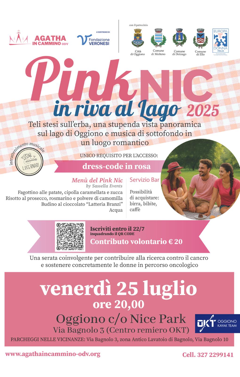 OGGIONO – Ritorna il tanto atteso Pink Nic, l’evento che è ormai un appuntamento imperdibile per la comunità di Oggiono e non solo. Un’occasione speciale per trascorrere una serata magica all’insegna della musica, della solidarietà e del divertimento, immersi in uno scenario incantevole a pochi passi dalle rive del lago.