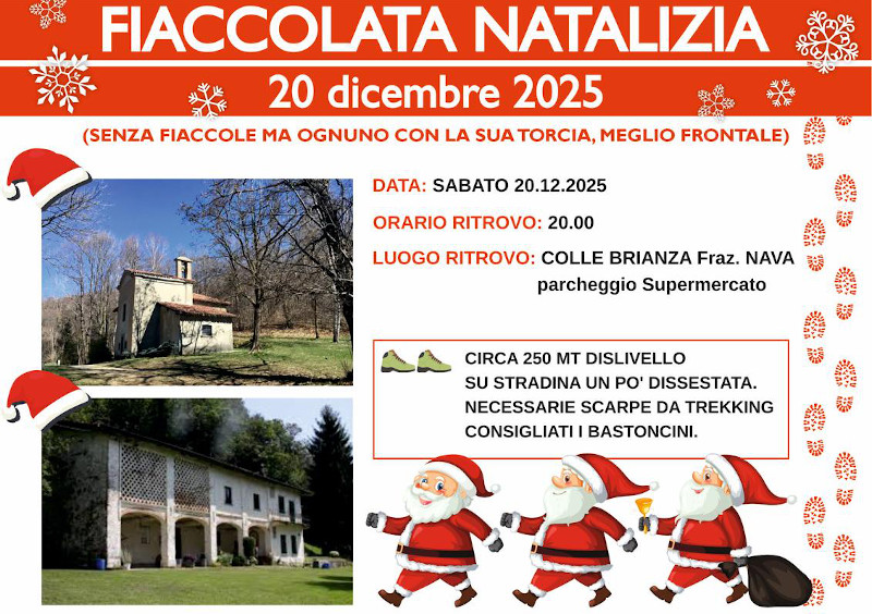 Il ritrovo è fissato alle 20 al parcheggio della frazione Nava (dove c’è il supermercato): da qui, muniti di torcia (meglio se frontale), ci si incamminerà verso la chiesa di San Nicola che verrà aperta per l’occasione. E’ previsto un momento di scambio di auguri con panettone e vin brulè. I più arditi (dotati di bastoncini) potranno proseguire la marcia fino agli Amici di Cascina dell’Alpe, dove verranno accolti con delle tisane calde.