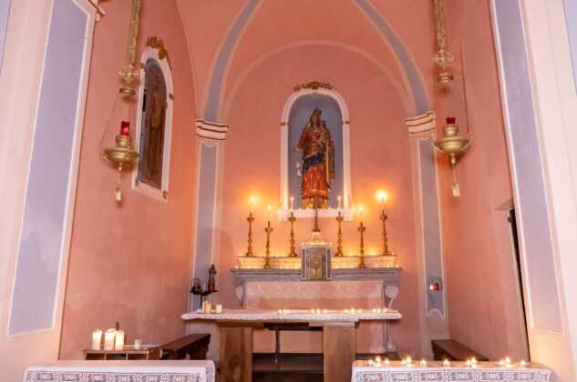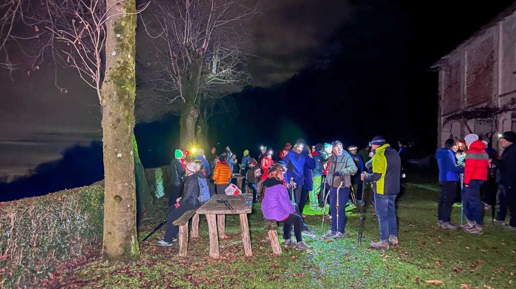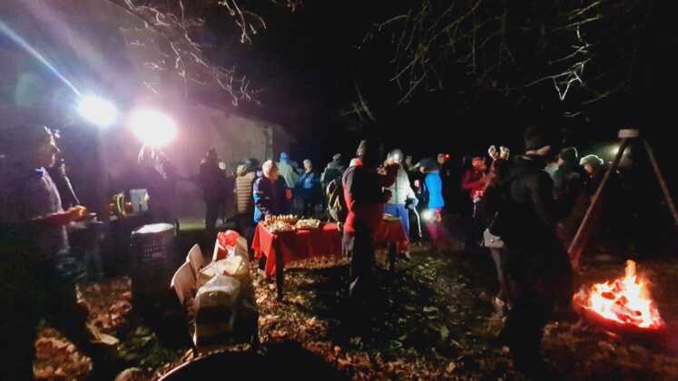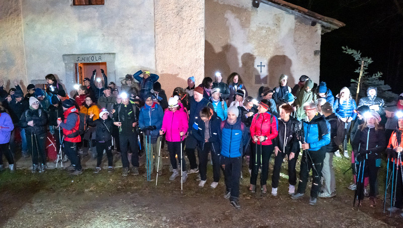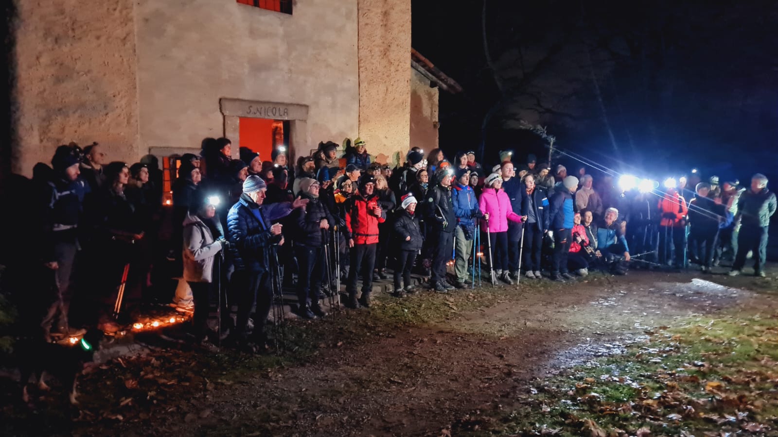Dopo aver raggiunto il borgo di Scerizza, il gruppo, illuminato con le torce, ha attraversato il bosco arrivando fino alla chiesina di San Nicola, aperta e illuminata per l’occasione. Non solo. Qui è stato allestito un piccolo banchetto con l’offerta di vin brulé e panettone per scaldare mani e anima.
