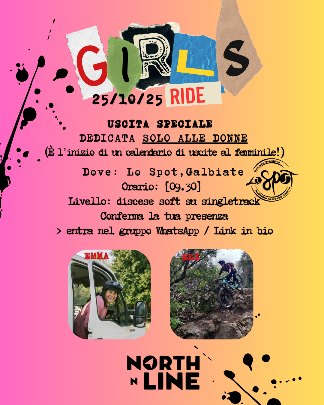 “Girls Ride”, uscita guidata da due atlete professioniste e riservata esclusivamente alle donne (Gruppo Whatsapp dedicato: https://chat.whatsapp.com/