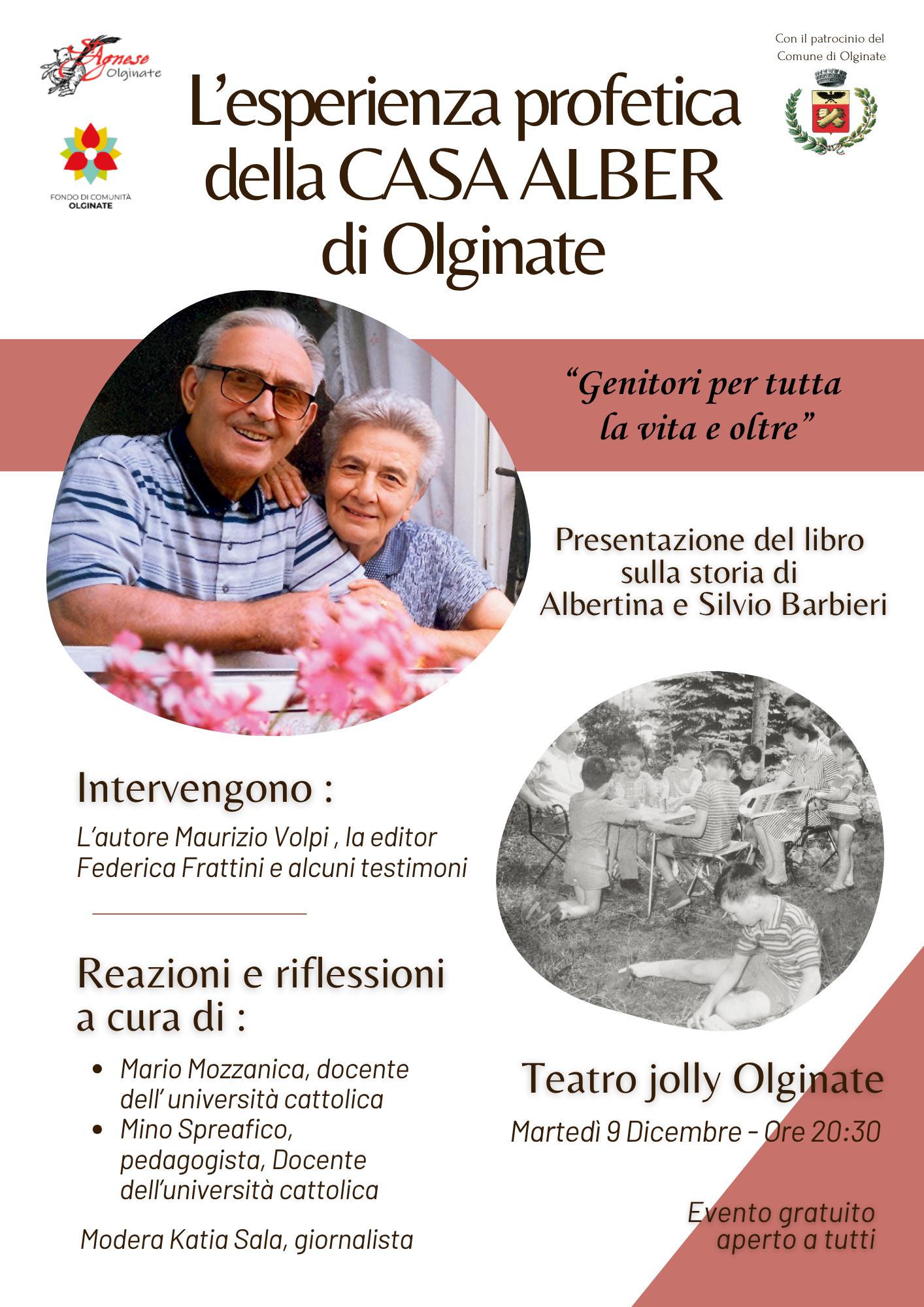 OLGINATE – La storia di Casa Alber e dei suoi fondatori, i coniugi Albertina Negri e Silvio Barbieri – da molti considerati “santi della porta accanto” – è stata raccolta in un libro e verrà presentata il 9 dicembre alle ore 20.30 al Teatro Jolly di Olginate.