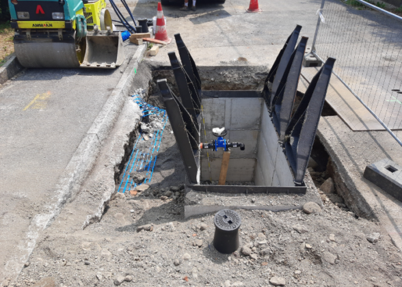 Sono state inoltre posate oltre 1,6 chilometri di nuove condotte in materiale plastico ad alta resistenza (PEAD), realizzati nuovi allacciamenti e installato un idrante soprasuolo.