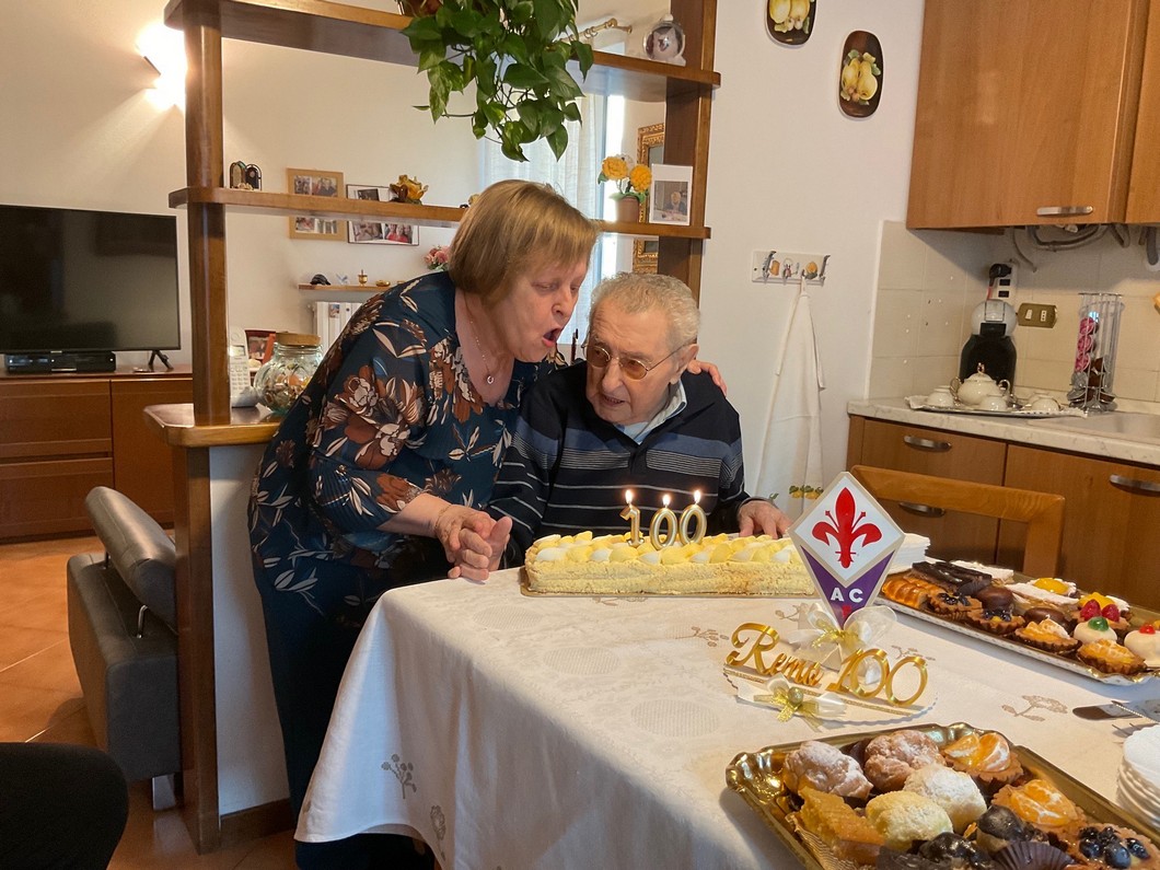 A festeggiarlo la figlia Ornella con il marito Claudio Mazzoleni e i nipoti Sara e Andrea. Un momento di festa, vissuto con grande serenità e dove, nonostante gli ultimi risultati, non poteva mancare, la bandiera e lo scudetto dell’amata Fiorentina.