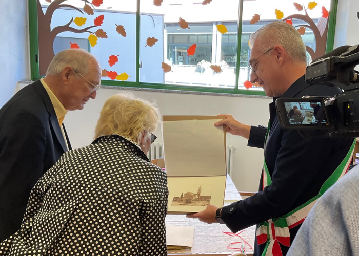 Il sindaco Cesare Colombo ha quindi omaggiato gli ospiti con una stampa raffigurante la Piazza di Valmadrera e con materiale illustrativo dei diversi interventi realizzati grazie al loro contributo.