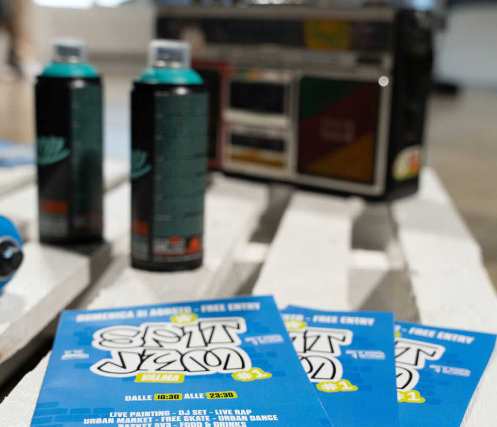 Per tutta la giornata il pubblico potrà visitare lo Spit Market, spazio dedicato a street brand, designer, artisti visivi e creativi, oltre agli stand delle associazioni locali. Attiva anche l’area food & beverage, con la collaborazione di Sala al Bar e le birre artigianali Dulac.