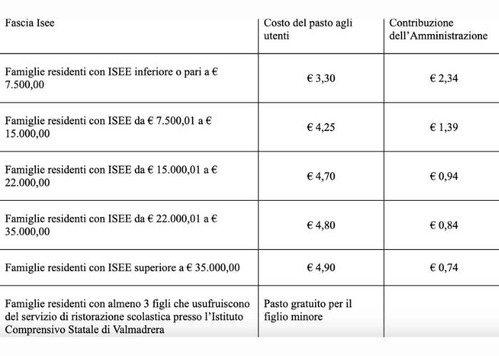 Il costo del pasto per le famiglie non residenti è invece stato adeguato e sarà pari a 5,93 euro.