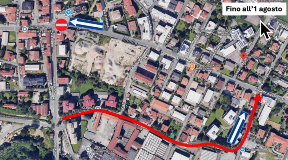 Per tale ragione fino al 1° agosto, si continuerà a non poter accedere in Viale Promessi Sposi dal semaforo di via Roma, ma il traffico in direzione Paré sarà deviato su Via Gavazzi e via Sabatelli.