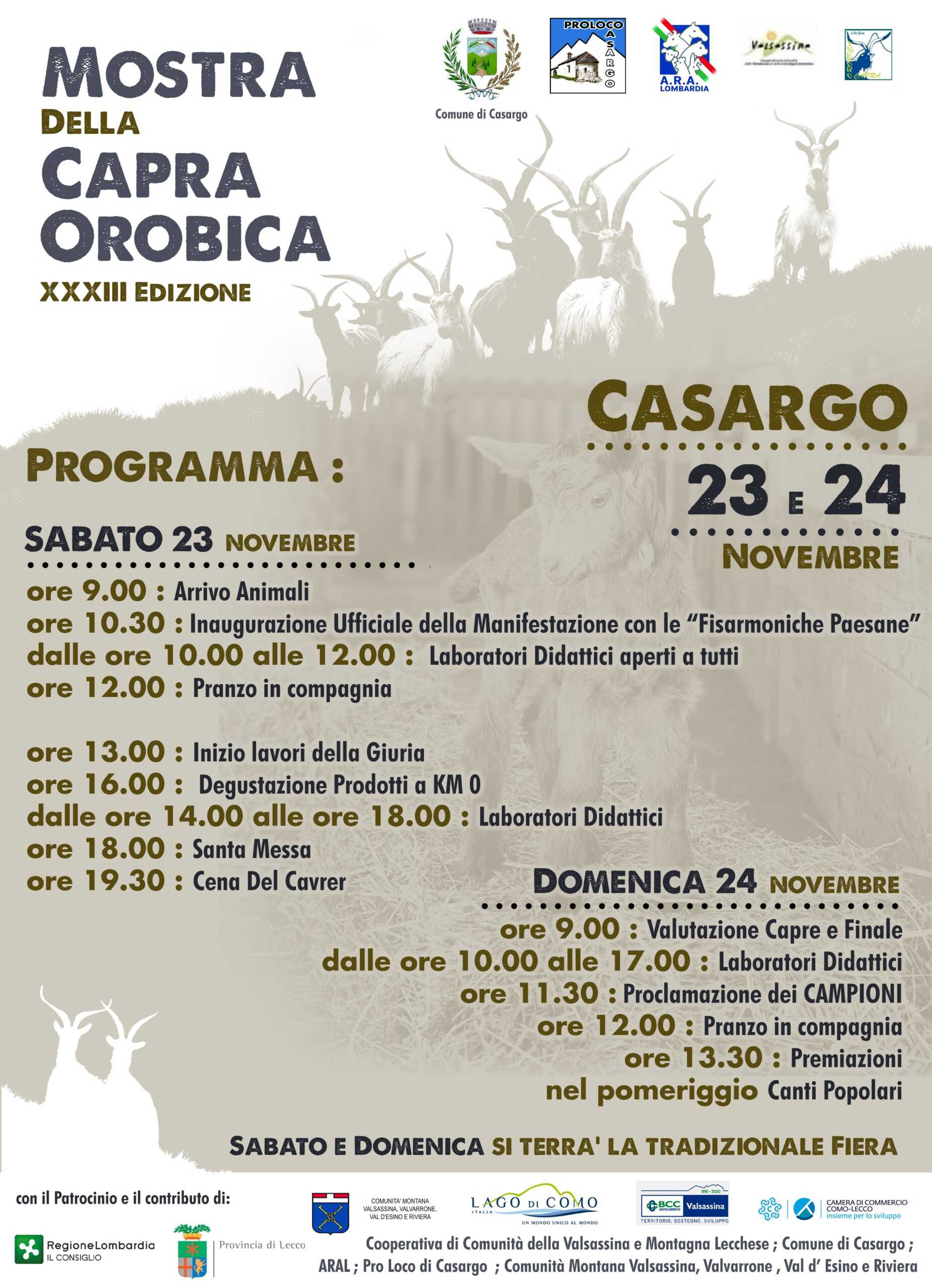 CASARGO – Un omaggio alla tradizione e alla biodiversità montana: Casargo si prepara ad accogliere la XXXIII Mostra della Capra Orobica, un evento che celebra uno dei simboli dell’identità alpina. Il weekend del 23 e 24 novembre, il paese della Valsassina si animerà con un ricco programma che unisce allevatori, appassionati e visitatori in una festa tra cultura, sapori e musica.