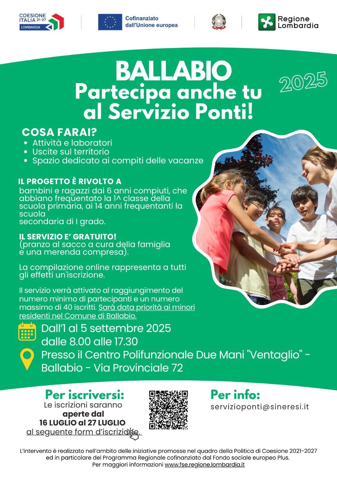 L’Amministrazione comunale di Ballabio ha scelto di richiedere i fondi per il “Progetto Ponti”, con l’obiettivo di offrire alle famiglie del territorio un supporto concreto e già collaudato per la conciliazione tra vita familiare e lavorativa.