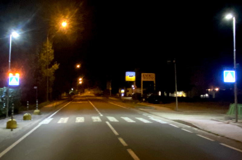 L’attraversamento realizzato è di quelli definiti “lama di luce” consistente in due pali, uno per ogni lato della carreggiata, aventi un’altezza di 6 metri fuori terra, sui cui sono stati installati segnali luminosi retroilluminati corredati da 2 lampeggianti bifacciali ed un corpo illuminante con ottica dedicata asimmetrica.