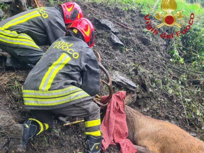 VESTRENO – Una squadra dei Vigili del Fuoco del distaccamento volontario di Bellano è intervenuta nella mattinata di oggi, martedì 23 settembre, per liberare un cervo di grosse dimensioni rimasto impigliato in una rete. I Vigili del Fuoco hanno lavorato per liberarlo con il supporto del veterinario e della Polizia Provinciale.