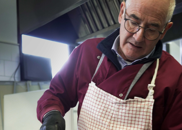 Questo primo incontro, della durata di tre ore, si è concentrato sull’approfondimento del ruolo del macellaio e delle tecniche di disosso, offrendo una panoramica completa sia teorica che pratica. Gli studenti hanno avuto l’opportunità di assistere e partecipare attivamente al disosso di bovini e suini, focalizzandosi in particolare sulla lavorazione della spalla e della coscia di vitello, nonché sulla coscia di maiale.