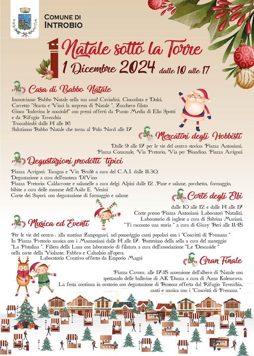 INTROBIO – Immancabile appuntamento che accende l’atmosfera natalizia del paese. Domenica 1 dicembre si terrà “Natale sotto la Torre”, con tanti appuntamenti dedicati a tutti coloro che vogliono vivere la magia del Natale.
