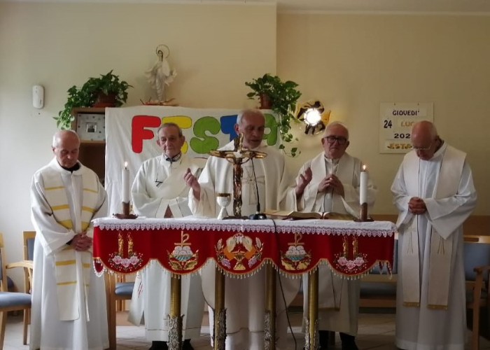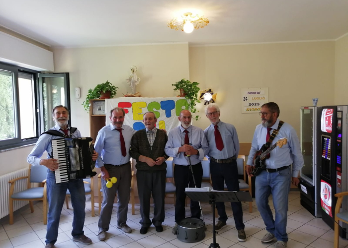 La funzione ha dato inizio solennemente al pomeriggio, che è proseguito in allegria, divertimento e serenità grazie ai “Cinque”, che hanno coinvolto gli ospiti con un susseguirsi di richieste e l’esecuzione di brani, tanto antichi quanto più recenti. Ogni nota ha evocato ricordi di una vita vissuta, ricca di storie ed emozioni ancora tutte da raccontare.