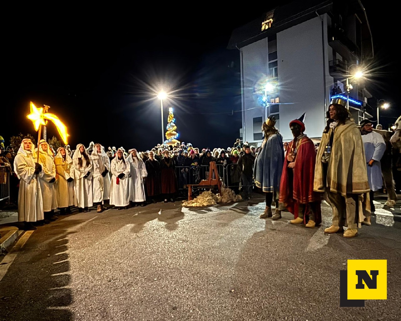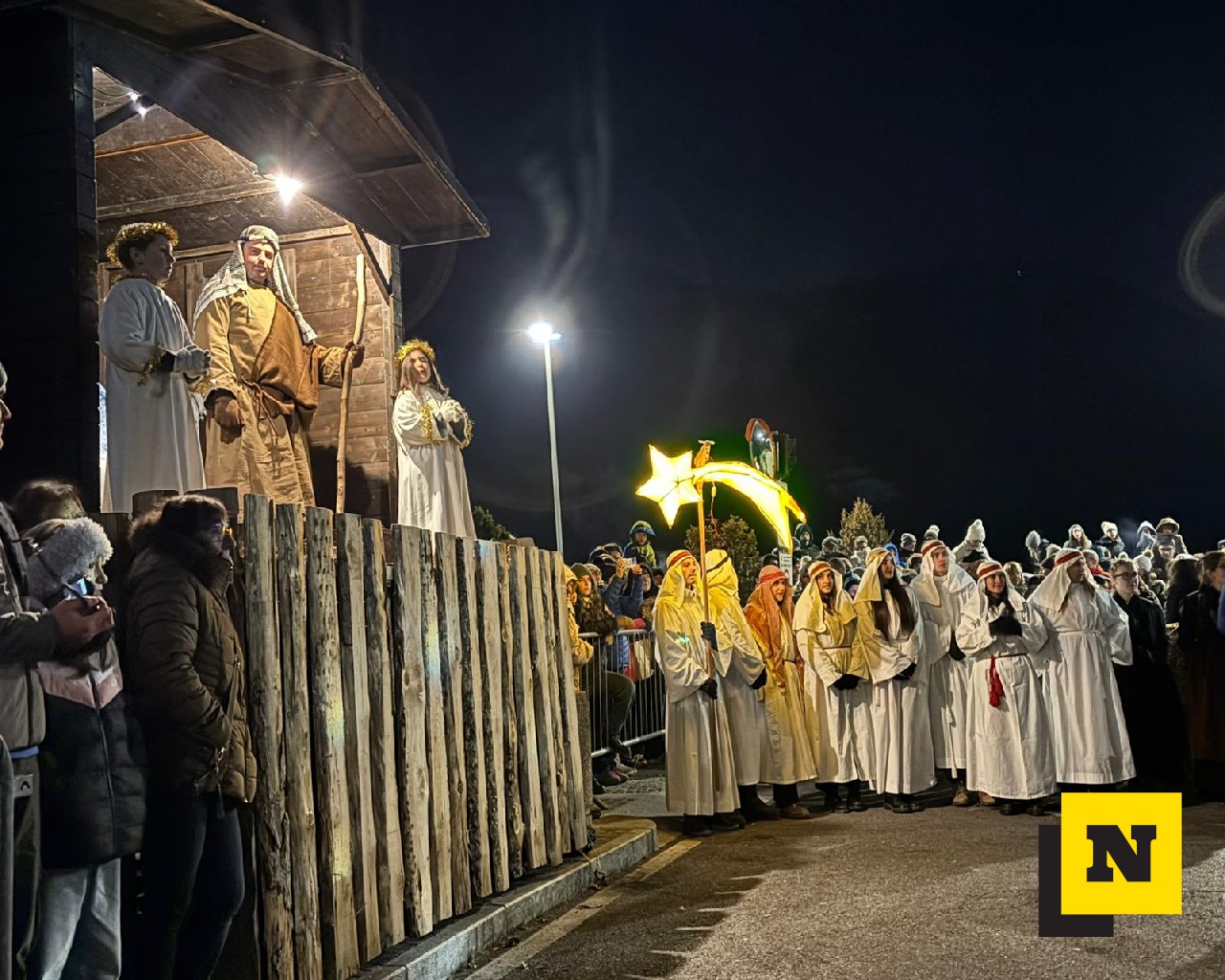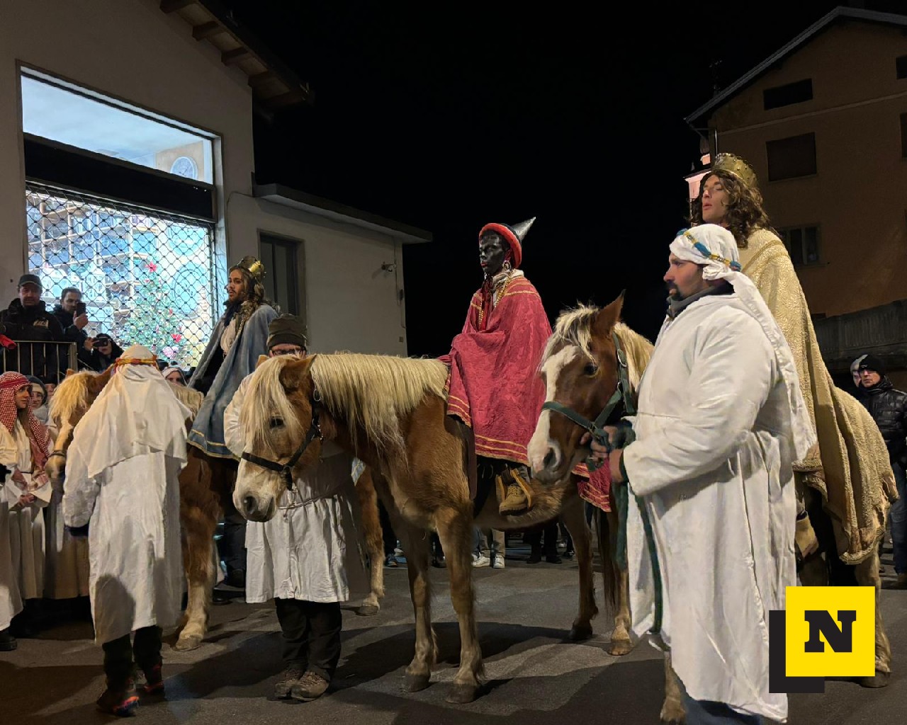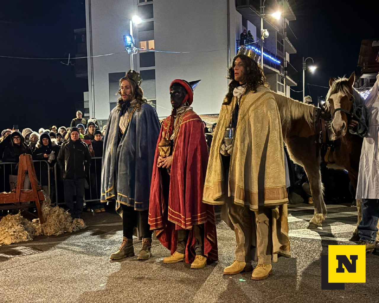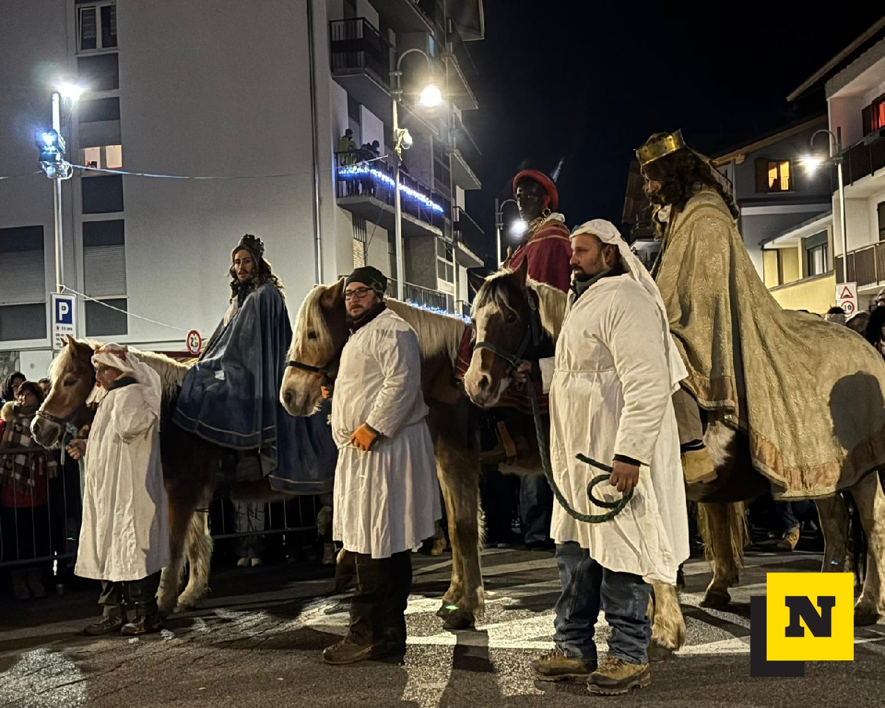 La Cavalcata si è conclusa intorno alle 23:15 in piazza della chiesa, dove il corteo ha trovato la sua naturale cornice. Qui, davanti a un presepe vivente allestito per l’occasione, tutti i presenti hanno eseguito una volta di più il canto dei Magi, suggellando con un gesto collettivo e partecipato il senso profondo di un’antica tradizione, con i Tre Re che hanno consegnato i doni (oro, inscenso e mirra) al Bambin Gesù prima di tornare ai propri paesi: “Or noi ce n’andiam – ai nostri paesi da cui venuti siam. Ma qui ci resta il cuore – in braccio al Signore, in braccio a Maria – e al Bambinel Gesù”.