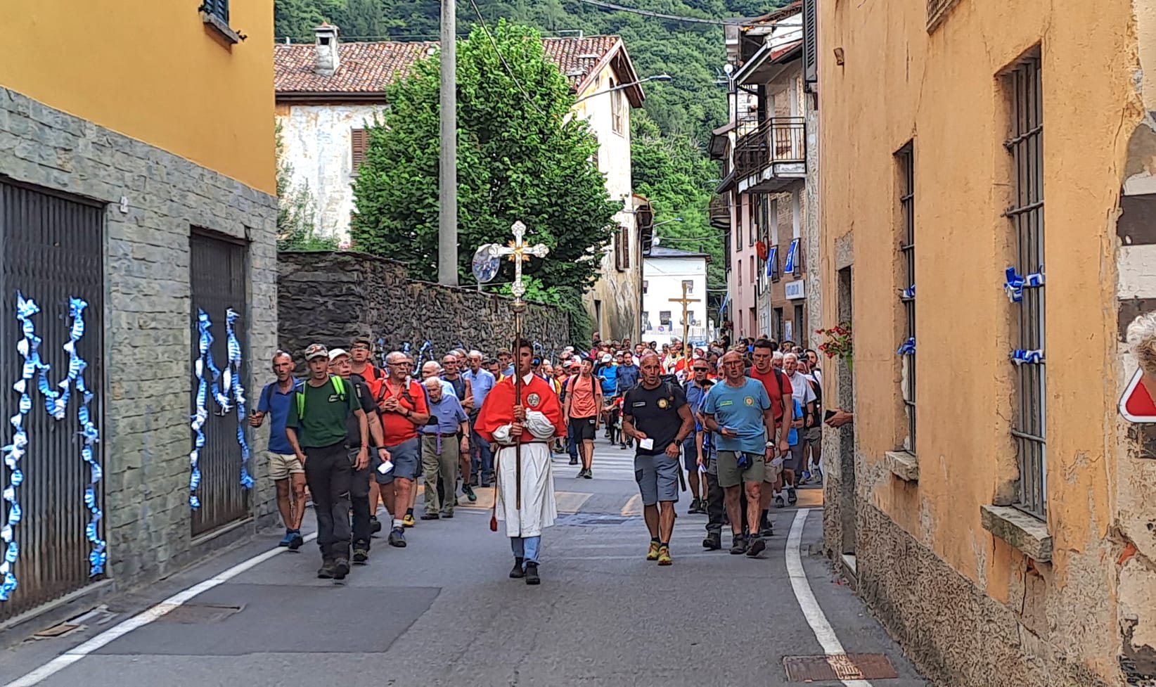 Anche ieri è stato rispettato lo storico programma. Alle 05.30 la celebrazione delle lodi in chiesa parrocchiale. Da lì è partita la lunga processione, che superate le strette vie del centro storico, si è incamminata in preghiera sulla strada verso la Val Biandino.