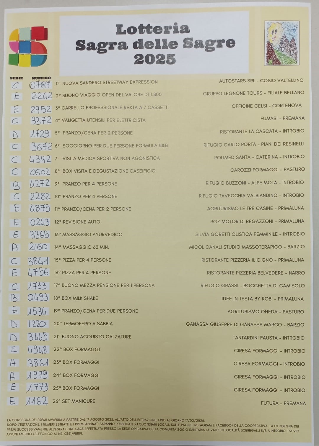La Sagra non è stata soltanto esposizione e intrattenimento: grande spazio anche alla solidarietà, con la lotteria a favore della Cooperativa Sociale Le Grigne impegnata sul territorio nell’assistenza di persone con disabilità e fragilità.
