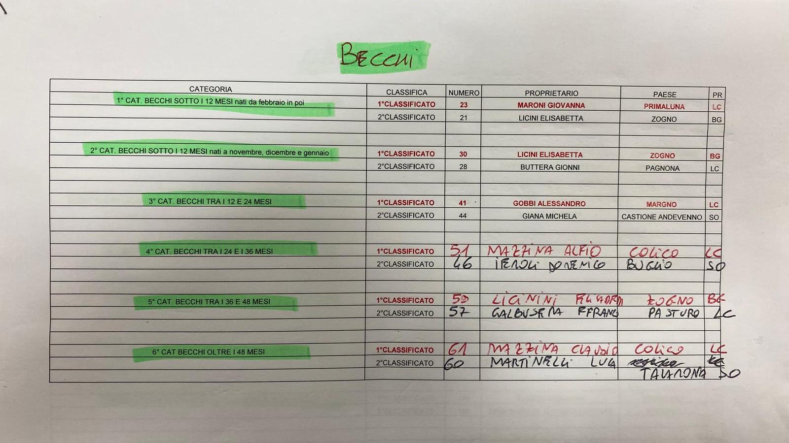 QUI LE CLASSIFICHE CATEGORIE BECCHI