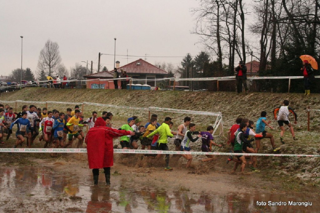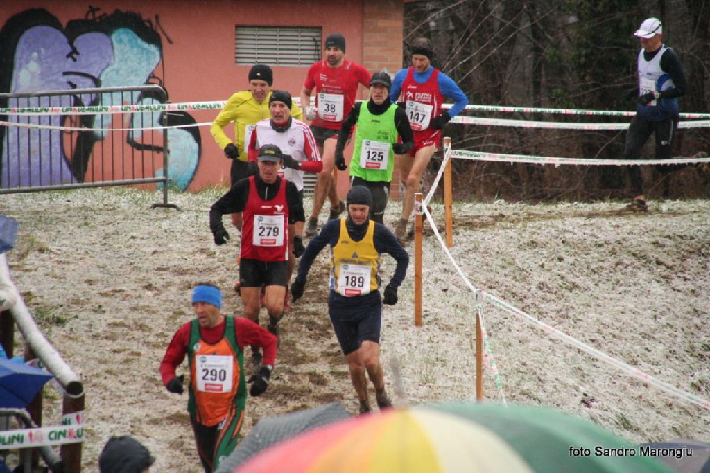 La lunga mattina di gare è iniziata di prima mattina dove alle ore 8.40 era attesa la partenza della gara riservata ai Master maschili 50 e oltre, partenza ritardata di una decina di minuti in quanto gli organizzatori hanno cercato di rimediare alla violenta ondata di maltempo che ha colpito sabato e domenica il campo gara, si è provato con le idrovore ad asciugare parte del percorso, si è sparso del fieno per renderlo meno scivoloso ma alla fine anche i più ostinati si sono dovuti arrendere e lo sparo è arrivato come una liberazione per i quasi 100 atleti infreddoliti che attendevano sotto lo start mentre acqua e neve continuavano a flagellare il campo gara.