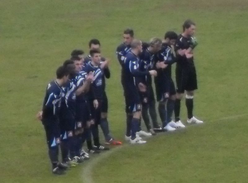 I segnali negativi colpiscono anche l’attacco, perché, al primo affondo verso la porta bergamasca, Martin accusa un dolore che lo mette ko già all’8′ del primo tempo. Non ci siamo. In tutti i sensi, perché il 4-3-3 lascia troppo spazio alla manovra del Caravaggio, che va troppo facilmente alla conclusione. Quello che accade tra il 12′ e il 23′ ha dell’incredibile: l’attacco ospite colpisce per 3 volte i pali della porta di Frigerio, infine, il portiere bluceleste compie una prodezza sul colpo di testa di Girometta. Il Lecco esce così indenne da un avvio ad altissimo rischio, forse aiutato da Aondio, ricordato con un minuto di raccoglimento e con uno striscione esposto in Curva Nord.