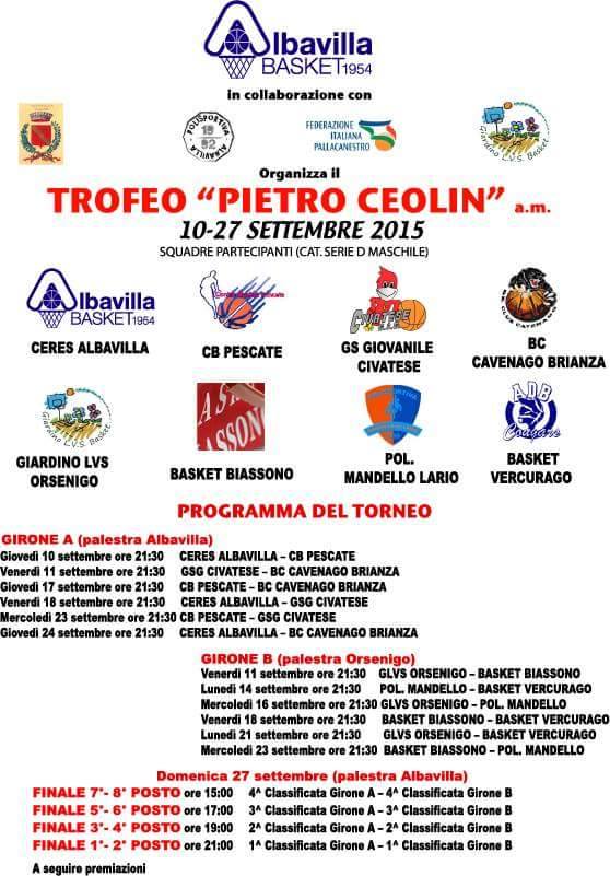 ALBAVILLA – Ci saranno ben quattro formazioni lecchesi al via del Memorial Pietro Ceolin, organizzato dalla Ceres Gruppo Moda Albavilla.