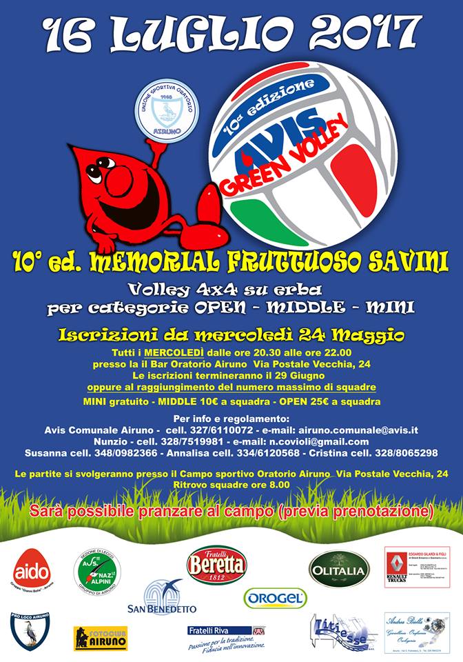 Domenica 16 luglio sarà la “10° ed. Green volley memorial Fruttuoso Savini” (QUI la locandina), a fare da protagonista, un torneo di volley 4X4 su erba per tutte le età organizzato da Avis e unione Sportiva.