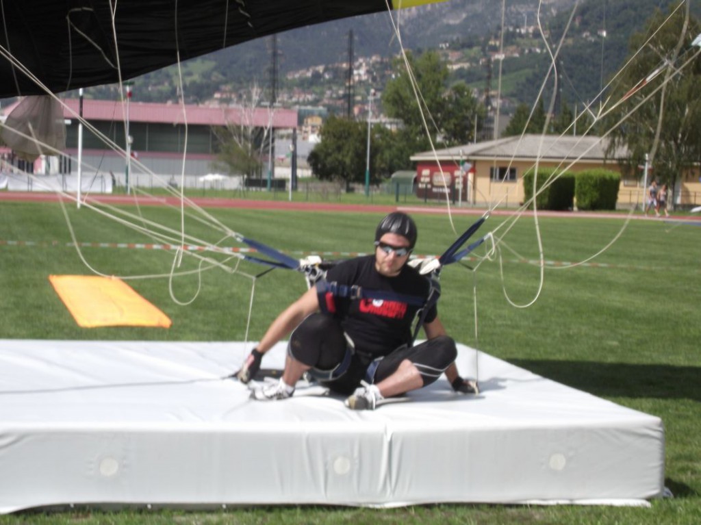 La precisione dell’atterraggio sarà misurata da un bersaglio elettronico posizionato nel campo di arrivo. Il diametro di tale bersaglio è di soli 20 centimetri e, al suo interno, vi è un cerchio di 2 centimetri di diametro che corrisponde al punto preciso che il piede del paracadutista dovrà colpire, i centimetri di distanza dal centro corrispondono alle penalità nel punteggio.