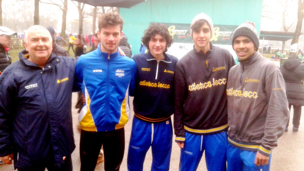 Subito applausi per i giallo blu nella prima gara della prima giornata, al via la staffetta Assoluta 2/2/3/3km con Mattia Gaffuri, Manuel Tagliaferri, Mustafà Belghiti e Samuele Nava a tagliare vittoriosi il traguardo dopo 10km in 32’17” dopo una lunga volata ingaggiata dal quarto frazionista lecchese che rimonta uno svantaggio iniziale di una cinquantina di metri e si presenta appaiato all’ultima curva col rappresentante della Rodengo Saiano quel El Kasmi Mohamed, capace di incutere ammirazione al via in virtù dei sui personali tra cui il 3’49” sui 1500m e il 2h 16’ in maratona, alla fine solo abbracci per Samuele Nava da parte dei compagni di squadra che si laureano campioni regionali.
